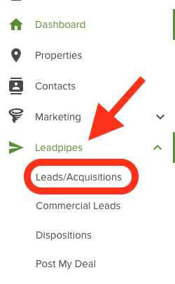 To access the comp engine, go to the Leadpipes > Leads/Acquisitions from the left side menu or right from your Dashboard